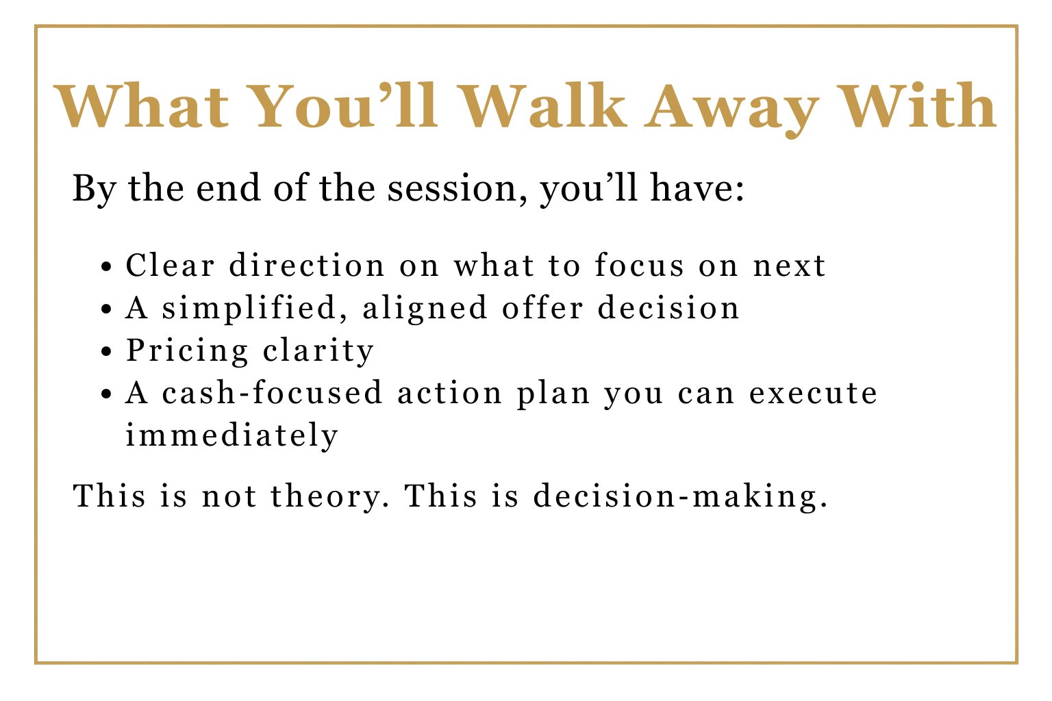 If you’re ready to stop circling ideas and start making confident, revenue‑focused decisions, this session is for you.